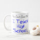 Muestra tu actitud docente cuando vuelves a la escuela este año. Este diseño de taza es todo texto escrito usando verde, azul y negro con la frase: "¡No me puedes asustar! Enseño Secundaria". Maravilloso regalo para darle las gracias a un profesor durante la semana de apreciación del profesor y al final del año o en cualquier momento intermedio.
