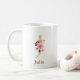 Taza De Café Nombre Borgoña y Monograma Floral Rosa Letra J
