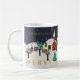 Esta taza de café ofrece un pueblo pintoresco del invierno el Nochebuena con caer de la nieve. A la izquierda es un nombre a personalizar y gritarlo lee "Felices Navidad". Éste es un pedazo artístico que le pondrá en el alcohol del día de fiesta para las vacaciones. Creado por el © Susan Coffey del artista.