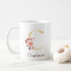 Taza de Café Nombre de Borgoña y Monograma de Floral Rosa Letra C. Este diseño elegante y romántico presenta hermosas hojas y flores de borgoña en acuarela con rosas rosadas en una letra C dorada falsa brillante. El nombre es de color borgoña, pero el color y la fuente se pueden cambiar fácilmente para adaptarse a su estilo. Esto es parte de la colección de Regalos y Favores de Boda que se puede ver haciendo clic en el enlace de arriba.