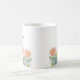 Taza estilo boho de coral y rosa con flores de acuarela y hojas verdes personalizada con tu nombre. Perfecta para las damas de honor o para la madre de la novia o el novio. Contáctanos para ayuda con personalización o productos coincidentes.