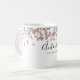 Una taza simple y elegante que es fácil de personalizar para muchas celebraciones diferentes. Agrega tu nombre en una fuente manuscrita negra y la fecha en una tipografía moderna debajo. Un toque de confeti rosa decora el lado derecho.