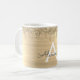 Taza de café o taza con nombre de monograma de metal cepillado con brillo metálico dorado y inicial. Esto hace que el regalo perfecto para alguien que ama el lujo glamoroso y los estilos chic en cumpleaños dulces 16, boda, despedida de soltera, aniversario, baby shower o fiesta de soltera.