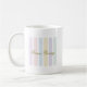 Este diseño presenta una estética moderna con rayas pastel verticales en tonos suaves de rosa, azul y lavanda. La fuente de escritura elegante te permite agregar un nombre personalizado, lo que lo convierte en un artículo verdaderamente único. Crea una atmósfera tranquilizadora y chic, perfecta para alegrar tu escritorio de oficina o cocina en casa. Esta taza es un regalo considerado para cumpleaños, despedidas de soltera o como un trato especial para ti mismo. Haz clic en "Personalizar" para cambiar fácilmente el texto a cualquier nombre o frase corta que desees.