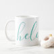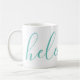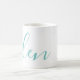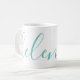 Una magnífica taza con un nombre personalizado en un estilo moderno y elegante. En azul verdoso y blanco. Maravilloso como el día de la madre, las vacaciones, el cumpleaños, el calentamiento de la casa o el regalo de la dama de honor.