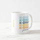 Modern Coffee Mug con la repetición de palabras "K-Drama" en tonalidades alegres de azul y naranja con la frase "sólo un episodio más". Por el amante del drama coreano. Es un personalizable con un nombre que baja por el lado de la taza a la sombra de amarillo/naranja. Si no lo desea personalizado, simplemente deje el texto en blanco.