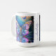 Esta hermosa taza personalizada de mariposa azul y morada hará el regalo perfecto para cualquier niña en tu lista: mamá, hija, amiga, maestra, vecina, etc. El diseño dramático presenta una gran mariposa de estilo fantástico en varios tonos de azules y morados con adornos dorados. Las alas de la mariposa, sorprendentemente hermosas, se reflejan en la superficie acuosa sobre la que se posa. Detrás hay un fondo de nubes esponjosas en verde azulado y blanco desvanecido con dos mariposas azules más pequeñas flotando alrededor de los bordes. Personaliza el área de texto en el centro de esta taza con un nombre o palabra de tu elección. El estilo de esta pieza es surrealista y de fantasía. Creé esta colorida pieza como regalo para mi propia madre y pensé que era lo suficientemente bonita como para compartirla. Diseñada utilizando arte generativo y mis habilidades de diseño gráfico en una inolvidable mañana de primavera en el sur de Georgia.