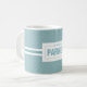 Patrón discreto de tulipano floral azul bebé, nombre y apellido de la etiqueta de personalizable mug. Un regalo de retiro perfecto.
