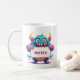 Un pequeño monstruo lindo y gracioso sostiene un cartel. La palabra "anotado" es completamente ajustable.