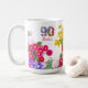Fiesta de cumpleaños 90 - Floral Bouquet 90 años café Mug. Fotografiado y diseñado con amor. ¡Planifique y organice la fiesta de cumpleaños más increíble! Personaliza con el nombre de primer chica de cumpleaños. ¡Disfrútalo!
