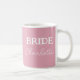 Esta taza de café rosa y blanca personalizada es un regalo ideal para la futura novia. Con texto blanco en negrita y letra elegante. Para agregar su propio nombre, haga clic en el botón de personalizar.