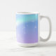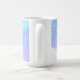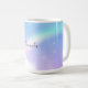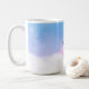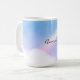 Una taza con una suave y encantadora imagen de fondo. Tonos azules y nubes rosas con un arcoiris mágico.