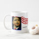 Pinté este retrato de Barack Obama el día de elección para expresar mi entusiasmo. Ahora usted a la parte de la poder en el entusiasmo de un futuro prometedor cada vez que usted toma un sorbo de este diseño presidencial. Cada lado de esta taza muestra el presidente futuro y su frase de la marca registrada del discurso de aceptación. "Podemos sí".