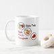 Diseño Apple, Pear y Pomegranate. Cada símbolo de fruta está en su propio círculo blanco con un marco negro. Las palabras "Frutos de invierno" se escriben en la esquina superior derecha en texto negro para que coincida con los marcos de círculo Cada fruto individual aparece en rojo con una ligera sombra de caída a lo largo del boro, borde izquierdo. Diseño limpio y depurado. Diseño coincidente en la parte delantera y trasera de esta taza.