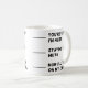 Este divertido diseño de texto en blanco y negro es perfecto para la persona en tu vida que no es una persona matutina, y no quiere que se le hable hasta que su café se haya ido (tal vez ese sea tu nombre). Esta simple jarra es genial para los empleados, compañeros de trabajo y jefes para agregar algo de humor a tu día.