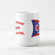 Ohio Flag Mug This Wavy Flag of Ohio Mug también está disponible en camisetas para hombres y mujeres, Camisetas, tees, botones, Pegatinas, cadenas de claves, tazas, Mousepads, Gorras, bolsas de té, regalos y más. No olvide que puede cambiar el tamaño, color o estilo de la mayoría de los productos o hacer el diseño de la bandera más grande o más pequeño utilizando la función "Personalizar". Las Banderas Vivas cuentan con más de 400 diseños únicos de Bandera Wavy de Alrededor del Mundo en una amplia variedad de Camisetas de calidad y artículos de regalo.