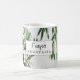 Un bonito diseño con hojas de oliva rústicas y aceitunas en un lavabo blanco de estilo mediterráneo de la isla griega. Una hermosa manera de mostrar a tu abuela griega cuánto la amas creando esta taza de delantal personalizada con las palabras "Abuela" en griego y luego su nombre con ramas de olivo dispersas. Un regalo perfecto para tu yiayia en el día de la madre, cumpleaños o sólo un regalo de agradecimiento.