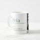 Simple personalized name definition text mug for the name Olivia meaning in a dictionary style design with three point meaning 1. An Olivia 2. Beacon of peace and hope 3. Giver of strength and friendship. Other name meanings and styles available or personalize this with your own name and what your name means to you, then add your own special photo to make this mug truly for Olivia! Designed by www.mylittleeden.com and namesense on Zazzle.
