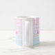 Una taza con un patrón abstracto fresco. Gradiente pastel en colores rosa y azul con rayas de oro finas. Las franjas/líneas de oro son falsas purpurinas de oro.