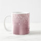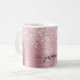 Taza de café personalizada con nombre en guión de monograma metálico ombre rosa dorado brillante y elegante para chicas. Estos diseños presentan su primer nombre en una hermosa caligrafía de letra manuscrita con fuente de cola de floritura o tipografía en hoja metálica falsa dorada rosa con borde brillante y glamuroso. Estos son fáciles de personalizar. Un regalo femenino y elegante para la inauguración de una casa, también para cumpleaños, día de la madre, boda, fiesta de cumpleaños de 16 años, despedida de soltera, baby shower, fiesta de graduación y es para la chica que ama cosas únicas y elegantes con brillo.