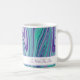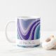 Este moderno tazón de café morado y azul contiene texto en personalizable. El texto dice "Ve con el flujo" en una hermosa fuente fluida. Puedes agregar tu nombre u otro mensaje en su lugar o dejarlo tal cual. La pintura digital abstracta en el fondo incluye remolinos ondulados azules, violetas y blancos. Crea una atmósfera relajante y relajante perfecta para las mañanas agitadas. Esta pintura púrpura abstracta viene en muchas otras variaciones de color. Visita mi tienda para verlos a todos.
