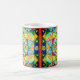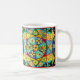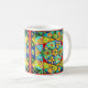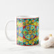 Los patrones geométricos vibrantes llenan la imagen, con círculos, triángulos y remolinos en un calidoscopio de colores que incluyen azul, verde, amarillo y rojo. El diseño intrincado crea una sensación de simetría y equilibrio.