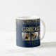 Taza de café moderna de graduación arcoíris, con 3 fotos, texto de purpurina dorada que dice 'graduado', el nombre del graduado, nombre de la escuela o universidad y año de graduación. Los estilos de fuente, tamaños y colores se pueden cambiar haciendo clic en el enlace personalizar más después de personalizar.