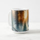 Esta imagen cautivadora cuenta con un majestuoso oso negro cruzando un árbol caído, enmarcado por una catedral de imponentes eververdes. A medida que la luz dorada del amanecer atraviesa la niebla matutina, arroja un resplandor suave y etéreo que le da vida al bosque.