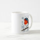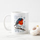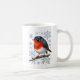 Esta taza celebra la gracia de la naturaleza y la magia de la estación nevada donde el ave rojizo ocupa el centro del escenario, aportando calor a la helada escena de copos de nieve.