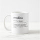 Esta taza minimalista de cerámica presenta una definición de estilo diccionario del término japonés "Mudita" en tipografía en blanco y negro y diseño limpio y sencillo. La palabra japonesa mudita no tiene equivalente en el idioma inglés y se refiere a la alegría sincera e incondicional experimentada en tomar placer en el éxito, felicidad o bienestar de los demás. Esta taza de café de definición de palabra mudita es un gran regalo para los amantes del yoga, los buscadores espirituales son amigos de una vida y meditación cuidadosa, así como para cualquier amante de Japón o amante de un diccionario que les guste expandir su vocabulario.