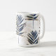 Taza De Café Palm azul moderno deja oro estalla diseño blanco