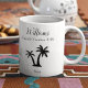 Recuerde las vacaciones tropicales de su familia con este tazón de café personalizado. El tazón de café es moderno y tiene una silueta negra de una palmera y un texto negro con su apellido familiar, año de viaje y destino de viaje. Esta taza es un lindo conservador personalizado que será valorado en los años venideros.