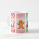 Esta taza de café festiva y alegre presenta un bonito diseño de color acuático de cuatro paneles, perfecto para las vacaciones. Cada lado exhibe un ícono de Navidades clásico diferente: un alegre Santa Claus sosteniendo un bastón de caramelo contra un fondo de rayas rojas, un lindo hombre de pan de jengibre sonriente con un patrón de remolino rosado, una colorida pila de regalos envueltos sobre un fondo verde menta, y un acogedor Globe de nieve con un árbol de Navidad decorado contra un brillante telón de fondo de oro. ¡Es la forma perfecta de disfrutar de tu café caliente, café o té y de las vacaciones de fiesta! Esta taza es un regalo excelente para amigos, familiares o colegas.