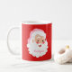 Cree una taza personalizada que sea perfecta para tomar algo de cacao caliente. Esta taza presenta un ilustracion de estilo retro de un alegre Santa Claus con un sombrero rosa de Santa Claus puesto contra un fondo rojo. Esta taza está lista para ser personalizada con un nombre en escritura rosada.