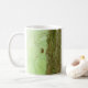 ¡Una pintura acuarela de un papá con largas piernas subiendo por la corteza de un árbol adorna esta taza!