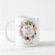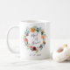 Un regalo de moda para el padre del novio, una taza con una cortina de flores de acuarela de una espléndida paleta de borgoña, oro, coral, verduras rubíes y frondosas con "doncella de honor" inscrita en el interior con letras escritas a mano. Personalice la fecha con su boda debajo. Diseñado para concordar con nuestra colección floral de caramelos Paprika.