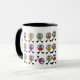Caracteres coloreados brillantes en una taza para aclarar las mañanas más tempranas.