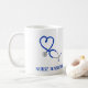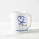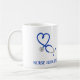 Crea un dulce regalo personalizado para tu enfermera o médica favorito. Esta taza de café presenta un ilustracion de un estetoscopio azul en azul y está listo para ser personalizado con su nombre u otro mensaje.