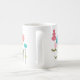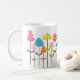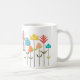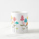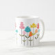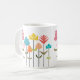 Esta taza tiene un diseño moderno de mediados de siglo de flores hechas de cuadrados, óvalos y diamantes que han sido manipulados para formar flores.