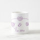 Esta taza es un regalo boda perfecto para las parejas. La personalización está disponible en los nombres y en la fecha establecida. Como es el caso, el diseño promueve un tema púrpura, pero cada elemento puede alterarse de color utilizando la herramienta de diseño. Para más ayuda, diríjase a vhcreativephoto2@gmail.com. Diseño ©Vann-Horn Creative Photo & Designs.