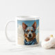Transforme su rutina matutina con el encanto del Pastor Australiano adornando su taza. Cada sorbo se convierte en una celebración de la inteligencia y la lealtad de la raza, bellamente capturada en detalles complejos. Eleva tus descansos de café con el espíritu de este querido compañero canino.