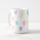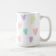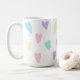 Una taza con corazones pastel por todas partes.