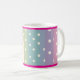 Modern Stripes and Polka dots in pastel shades on a dark pink background coffee mug.