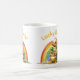 Comience el día con un poco de suerte utilizando esta alegre taza con un pato sosteniendo un trébol de cuatro hojas sobre una olla de oro bajo un arco iris. Ideal para el Día de San Patricio o como un divertido y afortunado regalo de encanto.