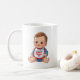Celebrate July 4th with the Patriotic Baby Sip Mug! Features a cartoon baby with a red-white-blue bib, American flag, and “Patriotic Baby Sip” in a playful font. Perfect gift from TrendyTeeShq for 2025!