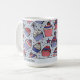 Haz que tus celebraciones del 4 de julio sean especiales con esta alegre y colorida taza de azul claro. Presenta un patrón de divertidos quequitos rojos, blancos y azules con toppers del 4 de julio, fresas, cerezas y rociaduras coloridas. Inspirado en el amor, y personalizado con su nombre y un mensaje especial en la parte inferior, es perfecto para añadir un toque delicioso a su café matutino.
