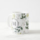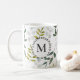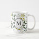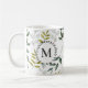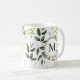 Taza De Café Patrón de acuarela de hojas verdes monogramadas