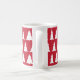 La taza festiva tiene un patrón de árbol geométrico blanco sobre un fondo rojo. Otras tazas de estilo disponibles en la barra lateral. Para ver el diseño moderno Patrón de Árboles Blancos sobre Navidades Rojos en otros elementos, haga clic en el enlace de la colección "Artes Rocklawn". Copyright ©Claire E. Skinner. Todos Los Derechos Reservados.