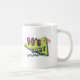Baby Mug de 90 con una divertida tipografía de "90's Baby''. El diseño incluye elementos de azul, naranjas y rosados, bordes amarillos, rasgados, patrones geométricos y formas inspirados en los años 90.