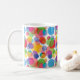 El círculo colorido se solapa con un patrón sin fisuras. ¡Un motivo alegre y vibrante para hacer su taza de café pop!